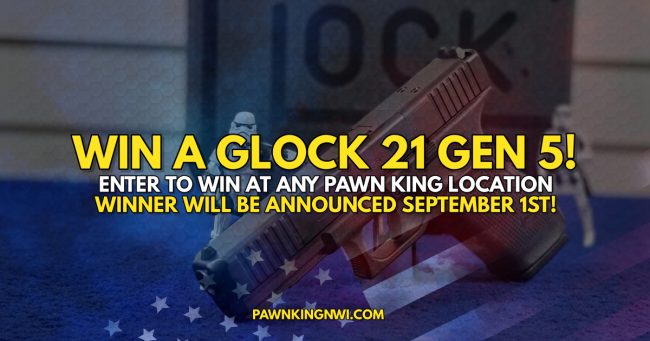 Win a Glock 21 Gen 5! From now until August 31st you can enter to win a brand new Glock 21 Gen 5! How? Just stop in to any Pawn King location, and sign up. Because we love to see your smiling faces you can even enter more than once! Enter once per day, per…